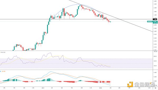 大方向依舊偏空,反彈至頸線位附近建議逢高減倉,這一帶整理后有再次回落風險,頸線壓力1美金。
