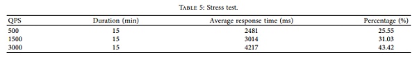 (3)以系統響應時間為評估指標,給出系統在三次二分熱壓力下的響應。不同壓力下的系統運行條件見表5和圖4。從圖表中可以看出,智能醫療援助系統在測試環境中的三種不同壓力條件下運行良好。