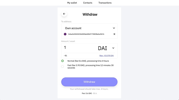存款和取款需要付費,一次存款+取款過程共需要大概 6-7 美金