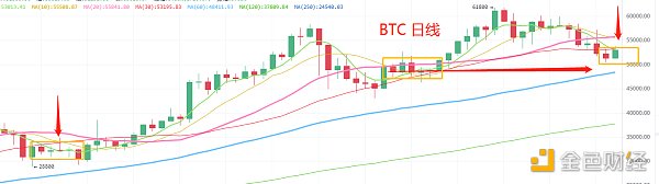 前期5月見頂回落,BTC跌至50周均線一帶迎來超跌反彈,前期歷史上都有類似走勢,不論熊市還是牛市,BTC首次跌至這一帶往往都會迎來一波大反彈,前期文章已有提示,這次也是迎來了接近85%的大反彈.