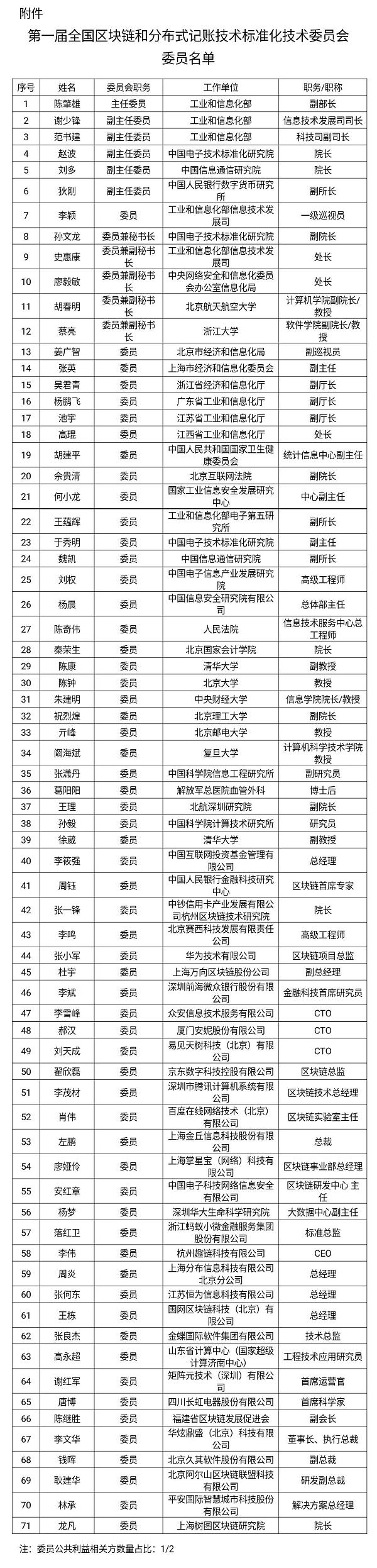 以下為全國區塊鏈和分布式記賬標準化技術委員會組建名單詳情: