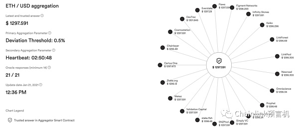 ETH/USDChainlink喂價從多個獨立的預言機運營商聚合價格數據