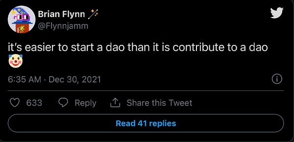 已有的項目是指已經存在了很長時間(在 DeFi 時間尺度上。例如DeFi Summer 2020 ),且聲譽好、所有 DeFi 用戶都知道的項目。這些項目是已經非常強大且有組織的 DAO。當你第一次加入 DeFi 時,你會發現DAO是非常完美的,大家希望加入其中。但是,即使大多數 DAO 都說大門是敞開的,但如果你沒有一技之長,加入DAO就會很困難。因為大多數位置已經被填滿。當然,加入DAO并非不可能。隨著這些項目不斷增加,一般情況下需要更多的貢獻者來擴展。如果你對你感興趣的DAO有對口技術,那么你加入的時候會容易些。但不幸的是,并不是所有人都對 DAO 有對口技術。如果你只是一個“普通人”,就盡你所能,看看你是否以及在哪里可以提供幫助。如果在特定的 DAO 中沒有適合你的位置,也要保持樂觀態度!因為還有很多其他的選擇。以后你也許可以加入你喜歡的 DAO。