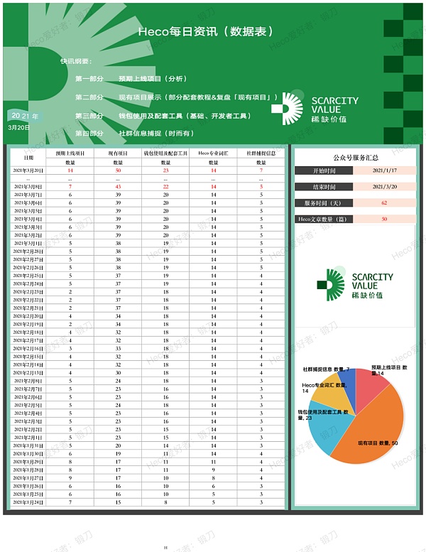 工具文章配合使用:簡介[石墨]鏈接 + 文章,由于公眾文章無法配置大量表格內容,文章僅展示更新圖片,圖中內容已存于,石墨文檔《(3.20)Heco每日資訊》