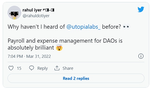 如果還不清楚的話,我們選擇了Utopia Labs,因為該團隊反應迅速,符合我們未來的計劃,并且有一些最大的DAO正在與他們進行實驗(FWB、PleasrDAO、SquiggleDAO)。我對這個團隊充滿了愛,很高興看到他們繼續建立的東西。