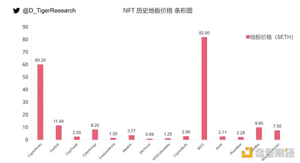 圖4-2 15種NFT的歷史最低價格($ETH)條形圖,截至2022-01-19