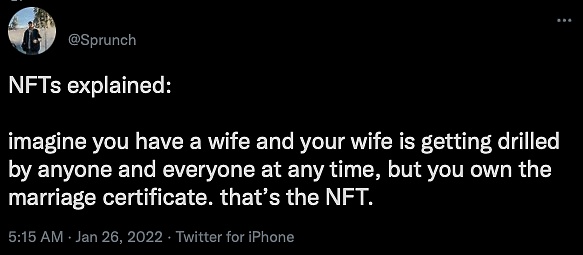 25 年前, John Doerr 預言: “互聯網是這個星球歷史上最偉大, 合法的財富創造活動”. 今天, Crypto 接過互聯網的接力棒, 成為最偉大的財富創造運動. NFT 在其中的地位毋庸置疑, 爭議越大價值越大. 木頭姐第一次知道 NFT 這個概念時, 也感嘆這就和她第一次看到互聯網一樣驚喜.