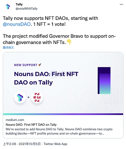 Tally:一個治理看板系統,去年年底增加了對 NFT DAO 的支持。