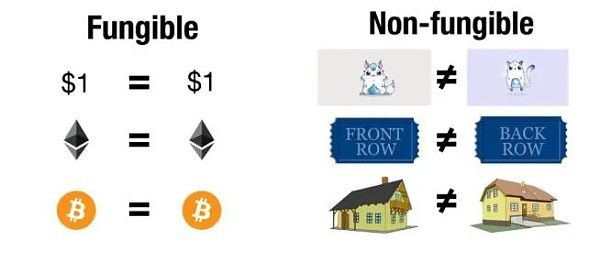 比特幣我們比較熟悉,但比特幣是同質化代幣,在區塊鏈上,一個比特幣可以與另一個比特幣互換這就叫做“同質化”。再比如你有一張 10 元的鈔票,我可以再給你換一張 10 元的鈔票,它們的效果都是一樣的。