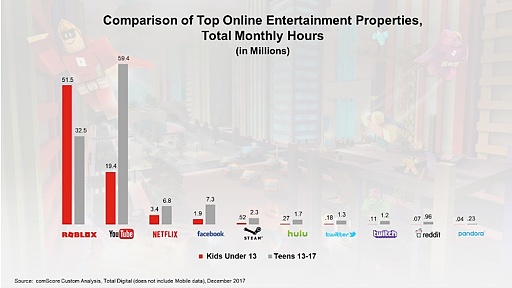 Roblox是如今最吸引年輕人的平臺之一,與Roblox合作有助于推廣耐克在年輕人之間的影響力以及品牌塑造。據comScore(一家媒體公司)的 統計,13 歲以下兒童每個月用在 Roblox 桌面端的時間超過 50 個小時。