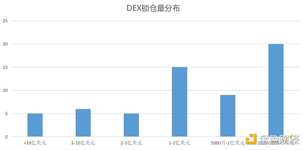把范圍放寬到1000萬美元以上,包括超過1億美元的DEX在內,共有30個DEX達到這一量級,占CoinMarketCap收錄DEX總量的12.5%,可見交易量比較集中。