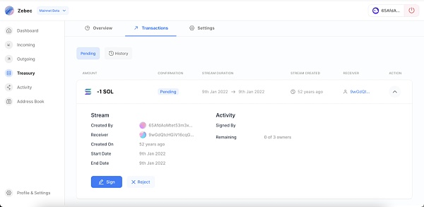 此外,對于Web3中的組織來說,共有金庫的管理也極為重要。Zebec Safe 在這個場景中發揮了作用:一個使用多重簽名的金庫,幫助組織成員共同管理資金。