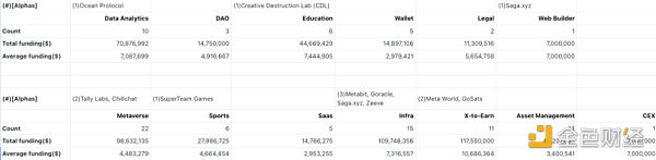 由上圖可見,X-to-earn、Web Builder、Legal 是經驗證的 beta。其具體融資數據如下。