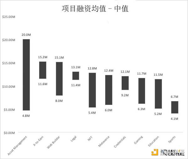 總體數量太少,不具有統計意義。總體來說,Layer 1 & Layer 2 屬于融資額度高,賽道火熱。按照技術流分項目的話,融資額度相差不大。