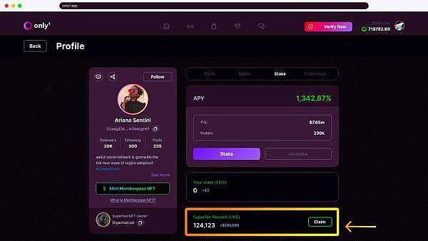 其他 Web3 平臺提供了更多功能。例如,Only1?是一個包含 NFT 的去中心化社交平臺,具有一系列功能,包括超級粉絲 NFT、信使服務、NFT 市場等。創作者可以創建 NFT,讓他們的粉絲能夠訪問獨家內容、圖像和視頻。
