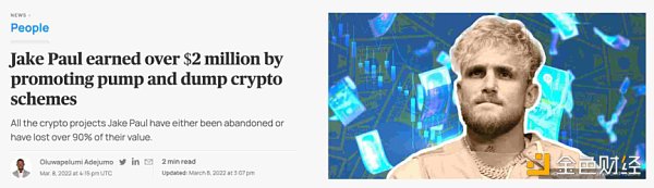 然而由于名人背書的影響力過于大,項目的熱度也可以通過炒作的方式達到欺騙性的的熱度。一些山寨炒作項目的營銷范圍廣泛,從付費廣告到購買虛假賬號,在到支付水軍吹捧,甚至還會高價請名人推廣造勢。例如,著名的 YouTuber 和拳擊手 Jake Paul 因他最近推廣的 Animoon 受到了熱議,Animoon 是一個受口袋妖怪啟發的 NFT 藏品,其創始人向粉絲撒謊并未能兌現諸多承諾。據估計,Paul 通過推廣加密貨幣和 NFT 賺了大約 200 萬美元,其中大約 90% 被證明是通過欺騙性的方式獲得的。