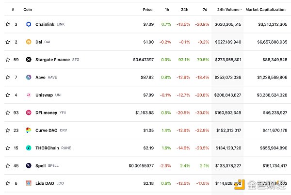 DeFi項目鎖定資產前十排名及鎖倉量 數據來源:defillama