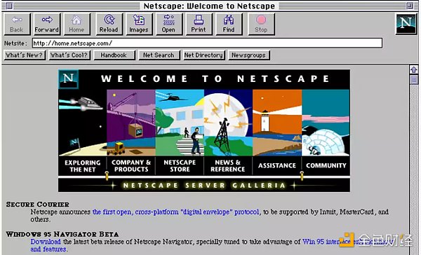 1995 年 8 月 9 日,Netscape 的 IPO 直接點燃互聯網商業化熱潮的爆點。Netscape 的股票開盤價是 28 美元,開盤僅一分鐘,股價就沖到了 70 美元,當天最高價達 75 美元,收盤價為 56 美元。《華爾街日報》評論說,通用公司花了 43 年才使市值達到 27 億美元,而 Netscape 只花了 1 分鐘。市場狂熱可見一斑。