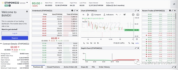 圖二:BitMEX上ETHPoW交易界面截圖