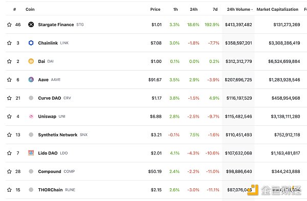 過去24小時去中心化交易所的交易量 數據來源:coingecko