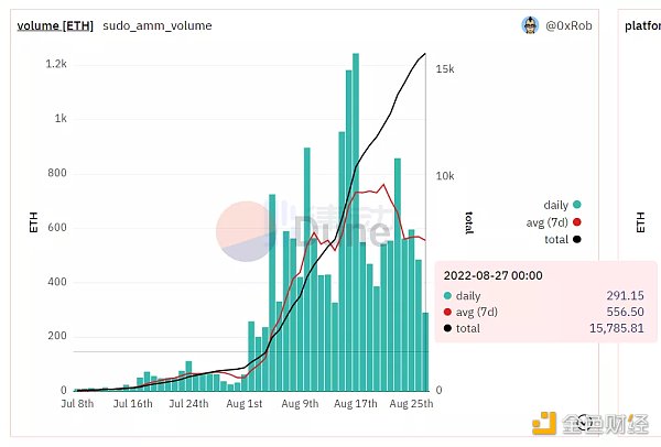 在不到兩個月的時間里,表現不可謂不驚艷:據?Dune 數據顯示,sudoswap 總交易額已超過了 2,700 萬美元,日活用戶一度超過了 1,900 人,累積交易了超過 11 萬個 NFT。