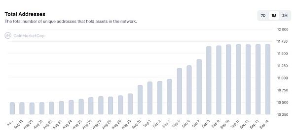 有趣的是,只有約1,000名新的交易員/投資者參與了價格飆升。這標志著人們對LUNC仍然缺乏信任。2022年8月28日,LUNC 的持有者有10,619人,2022年9月10日增長到11,691人。根據下面的圖表,在這些日期之間,只有1,072個更獨特的錢包地址持有LUNC。
