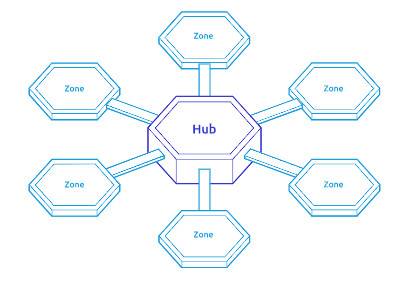 Cosmos 通過 Hub 和 Zone 的形式來實現多層結構,網絡通過增加 Zone 實現擴容,Zone 也可以成為 Hub 再連接上其他 Zone。相對于來說,Zone 就是網絡中的分片, Zone 與 Zone 之間可以通過 IBC (區塊鏈間通信)協議實現通信。