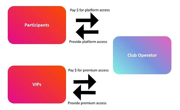 另一方面,VIP夜店的商業模式略有不同。VIP俱樂部能讓那些想要多付錢、享受優質服務的人獲得他們所追求的生理欲望。VIP夜店的三個主要角色是俱樂部經營者、參與者和VIP。