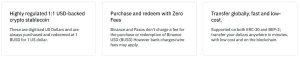 與Coinbase穩定幣一樣,Binance BUSD 被宣傳為“高度監管”的1:1美元支持的代幣(我們將看到這意味著什么):