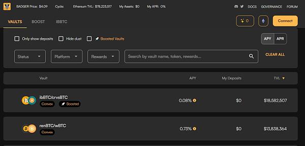 它的主要產品是保險庫(也叫 sett),其工作方式與其他 yield farming aggregators 相同,但更專注于 token 化的 BTC 以自動賺取收益。