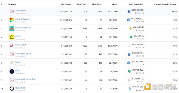 過去24小時去中心化交易所的交易量 數據來源:coingecko
