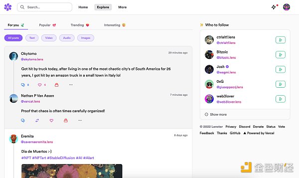 這些數據并不令人驚訝,因為一些構建在上面的應用程序看起來相當出色,我們來看看Lenster(下圖),與Twitter類似,它甚至還有filters過濾器可以讓用戶篩選類別:流行、趨勢還是有趣。