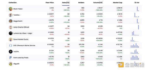 24小時內銷售前十的NFT 數據來源:NFTGO