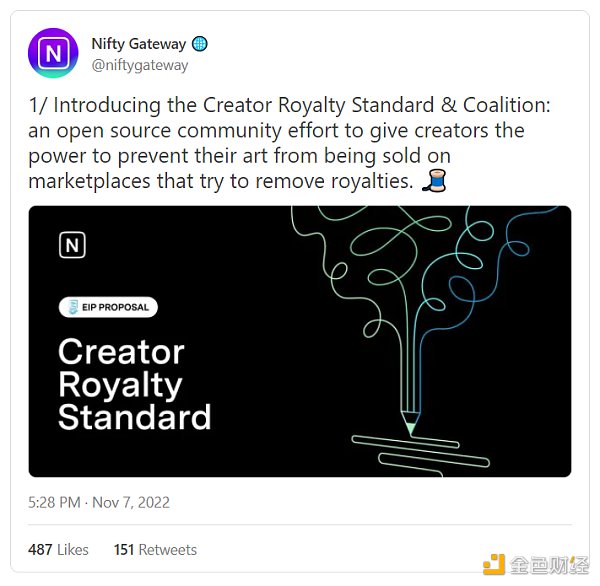 例如,Nifty Gateway 剛剛宣布它將永遠尊重 NFT 版稅,并公布了自己的創作者版稅標準提案。展望未來,其他市場平臺也會在這個問題上有類似的突破。