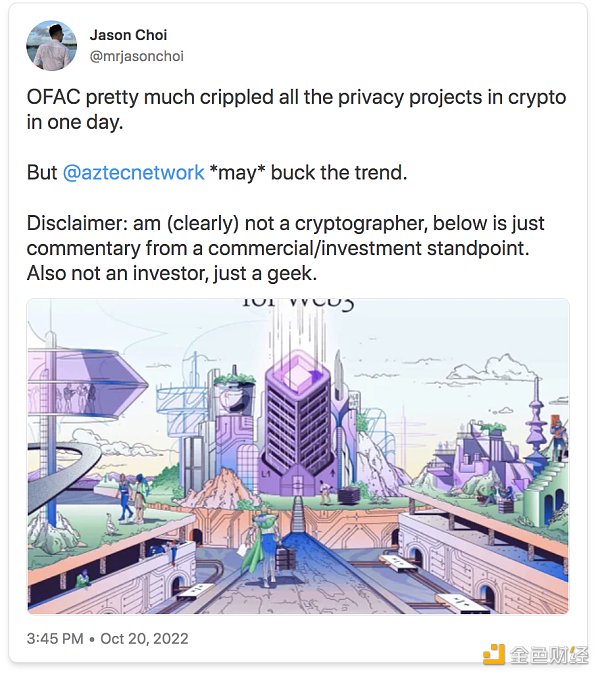 OFAC 最近對隱私項目造成了很大的破壞。很多 crypto 原住民對此非常關注。而 Aztec 帶來了一線希望。
