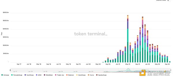 在鼎盛時期,著名的 DEX 平臺產生了約 6 億美元的費用;我們現在的費用已降至約 8000 萬美元。