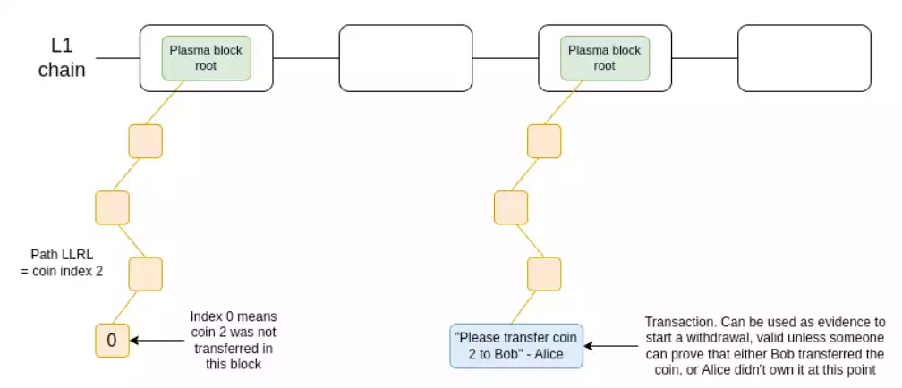 在這上第一個嘗鮮的是 Plasma,這是一種 2017 年和 2018 年在以太坊研究界流行的擴容解決方案。Plasma 的工作原理是將余額拆分為一組獨立的「代幣」,每個代幣都會分配一個索引,并放到 Plasma 區塊的 Merkle 樹中的特定位置上。要進行有效的代幣轉移,需要將交易放到樹中的正確位置上,而樹根會被發布到鏈上。