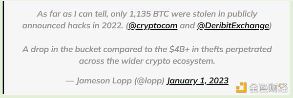 從整體生態系統安全來說,2022年是令人驚嘆的一年!重大黑客攻擊會導致系統信心的喪失,即使攻擊與協議或網絡安全無關,也可成為系統發展的重大挫折。當然,另一方面,由于可信第三方的欺詐和風險管理不善,2022年發生了大量損失……這應該會讓人們更加看好自我托管!