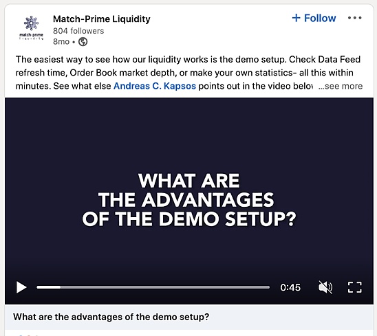 另一種方法是像Match-Prime Liquidity那樣在社交媒體賬戶上發布一到兩分鐘的視頻。