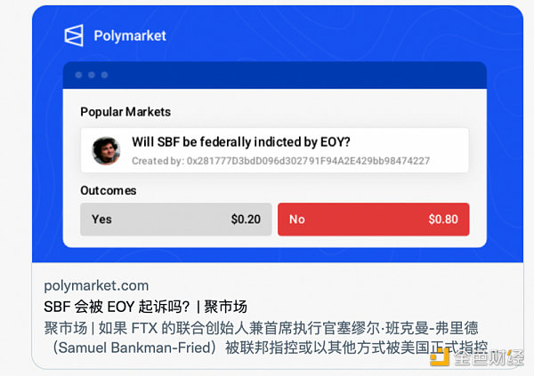 其官方Twitter有24.1K的關注者,在主題上也主要是配合網站上的熱門競猜做一些運營活動作,比如最近在圈內探討的非常熱點的話題:“你覺得SFB會被起訴嗎?”。圍繞著這個話題,官方新建了一個對賭合約(這也是當前預言市場主要的模式),同時對話題進行宣傳。