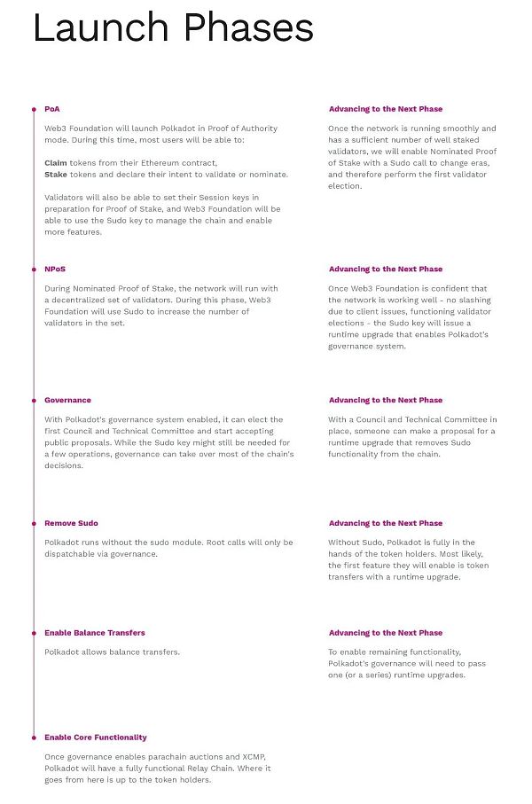 主要分為POA、NPoS、治理、移除SuDo、啟動轉賬&核心功能六個階段。