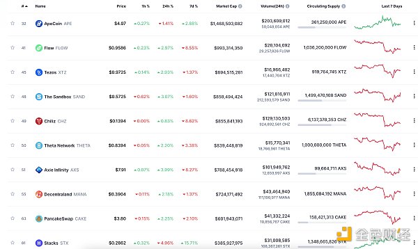 NFT總市值、市值排名前十項目 數據來源:Coinmarketcap