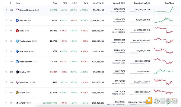 24小時NFT交易量、交易量前十項目 數據來源:Coinmarketcap