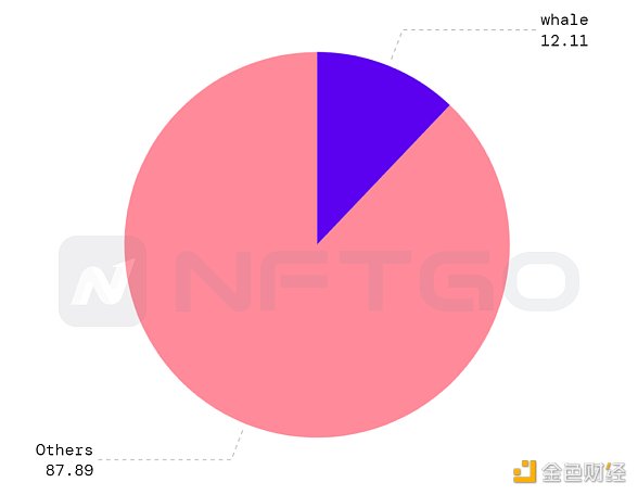“巨鯨”一詞用于描述持有大量特定NFT的個人或組織,它們通常持有較高的NFT資產(至少有價值100萬美元),我們通常可以根據它們的行為特征(如:資金規模和資金動向)來判斷是否為巨鯨。截至目前巨鯨擁有1.25M美元的NFT資產,占據市場份額的12.11%。