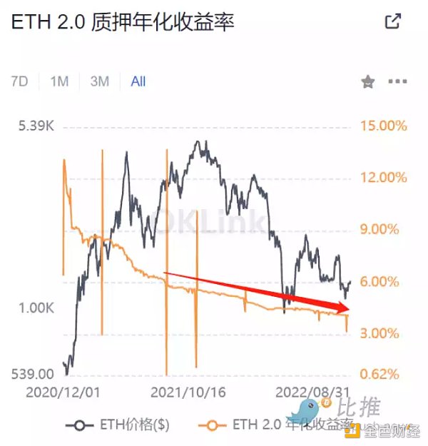 雖然以太坊年化收益率整體趨于下降,但以太坊的保值性較強,以太坊質押量一直走高。據 Oklink 數據顯示,截止 12 月 6 日,以太坊質押率為 12.99%。