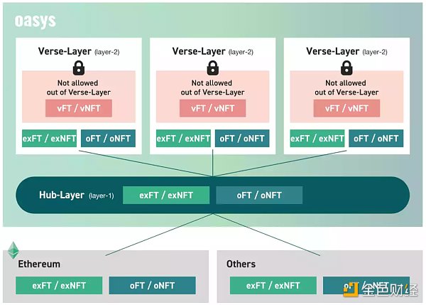 exFT/exNFT 是在 Oasys 之外的網絡上鑄造的代幣,ex 代表外部。它們可通過跨鏈橋在 Oasys 的 Hub-Layer 和 Verse-Layer 上使用。