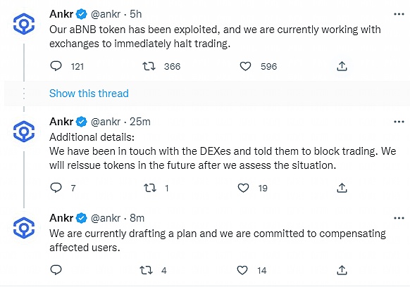 攻擊發生之后,Ankr 針對 aBNBc 合約遭到攻擊一事稱,「目前正在與交易所合作以立即停止交易。Ankr Staking 上的所有底層資產都是安全的,所有基礎設施服務不受影響。」
