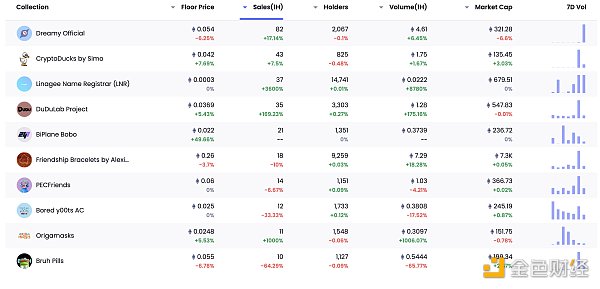 24小時內銷售前十的NFT 數據來源:NFTGO