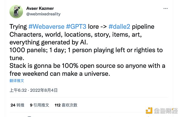 例如,Web3 游戲開發商 Webaverse 此前已嘗試為游戲中的 NPC 接入 OpenAI 的 GPT-3 模型?,相比傳統的 NPC,這些 NPC 會更智能,除了解答游戲中的疑問,它們還可以回答有關現實世界中的一些簡單問題。