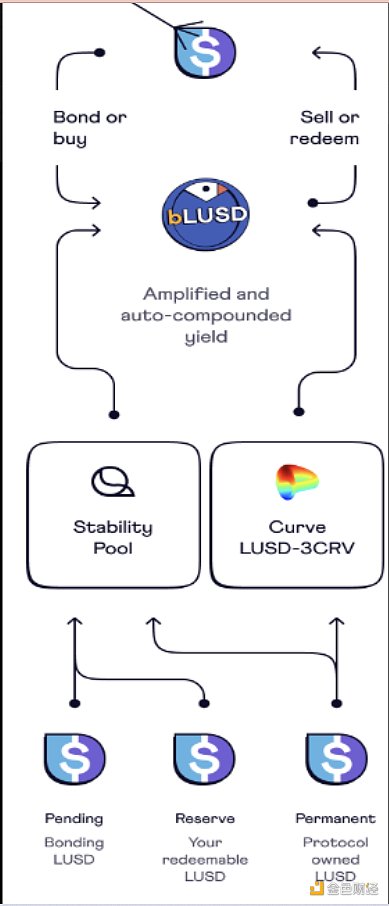 儲備桶:來自債券 LUSD 的一部分以及從其他兩個桶中獲得的 LUSD 收益在這里,支持全部 bLUSD 供應。